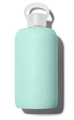 -. Feature : Cult favorite. Preferred by A-list celebrities all over the world. Featured in Vogue, ELLE, Forbes, The New York Times, Entrepreneur, InStyle, W, Marie Claire, Glamour, Allure, Refinery29. / Makes drinking water a joy. Runway-inspired colors, no leak cap, clean glass, no chemical leaching or canteen taste, soft grippy sleeve, quiet when you set it down, not tippy. Small 1.25" opening for easy no-spill sips. BPA-free, phthalate-free. Does not fit most cup holders. Fits smaller-sized ice cubes (which bkr also makes). Dishwasher safe. / bkr supports early detection cancer research, clean water initiatives and organizations that make the world a better place.