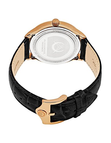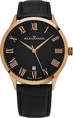 -. Title : Alexander Statesman Triumph Wrist Watch For Men - Stainless Steel Plated Rose Gold Watch - Black Leather Analog Swiss Watch - Black Dial Date Mens Designer Watch A103-05
