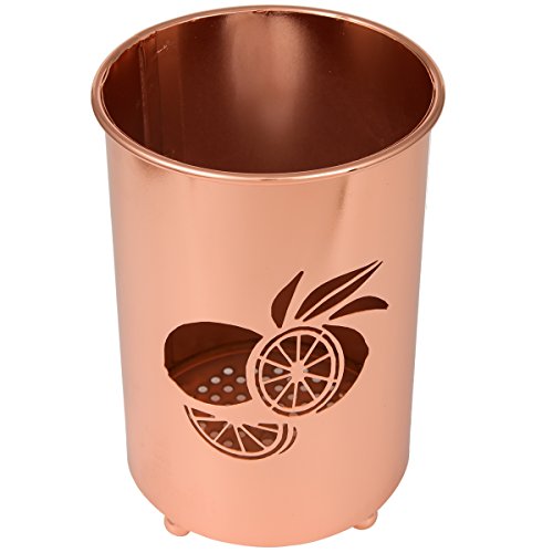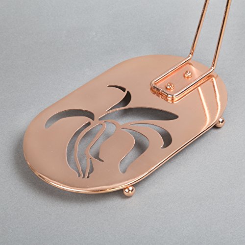 Features an banana design lazer cut motif into the base surface. Dimensions: 9-1/2" x 5-7/8" x 13-3/4" H. Elegant copper finish. Sturdy metal base construction. Hand wash recommended.