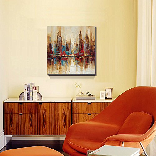Stretched and framed horizontal city canvas oil paintings wall art ready to hang for home decorations wall decor, each panel has a black hook already mounted on the wooden bar for easy hanging out of box.