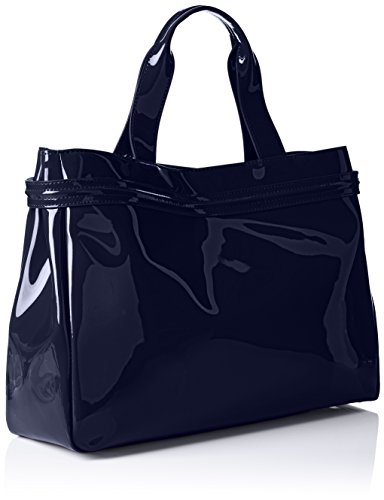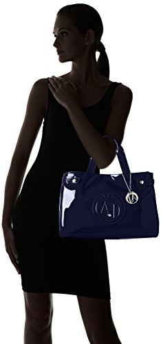 Solid color top handle bag with aj logo and charm details at front.