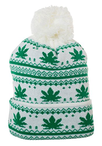 (Artisan Owl)/Accessories/Hats/DIRECT FROM USA/Artisan Owl Pot Leaf Winter Knit Pom Pom Marijuana Weed Beanie Hat With Cuff