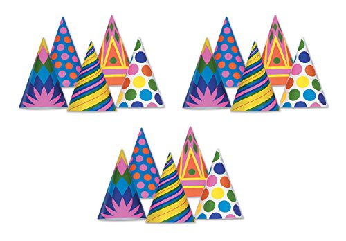 Beistle 60324 16 Piece Packaged Cone Hats, 6.5", Multicolor