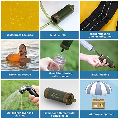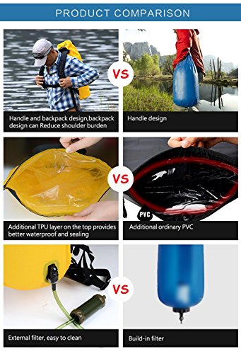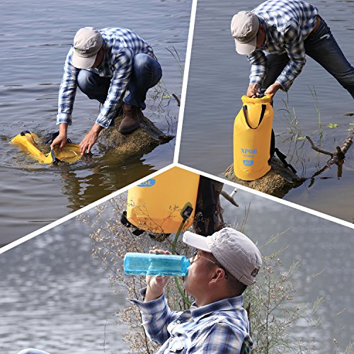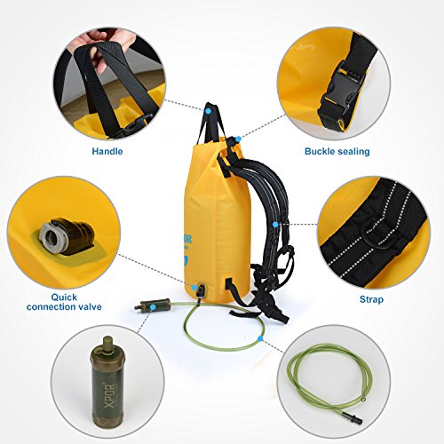 Xpor Portable Dry Bag and Outdoor Hydration Pack,10L/25L Gravity Water Filter,Waterproof Backpack Bladder Bag Water Purification System with 1 Shower for Traveling, Camping, Outdoors and Adventures