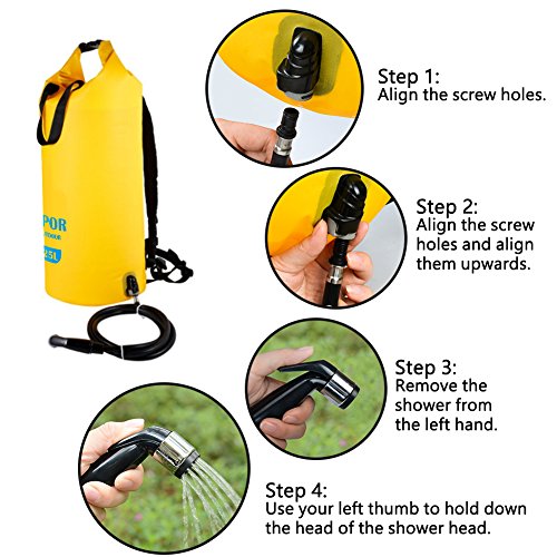 √Versatile: Creatively designed for drowning rescue after folding 3 layers (comply with International rescue equipment rules) and can also be used as a waterproof backpack to store items. Besides, the attached shower head is perfect for easing the trek of fatigue.