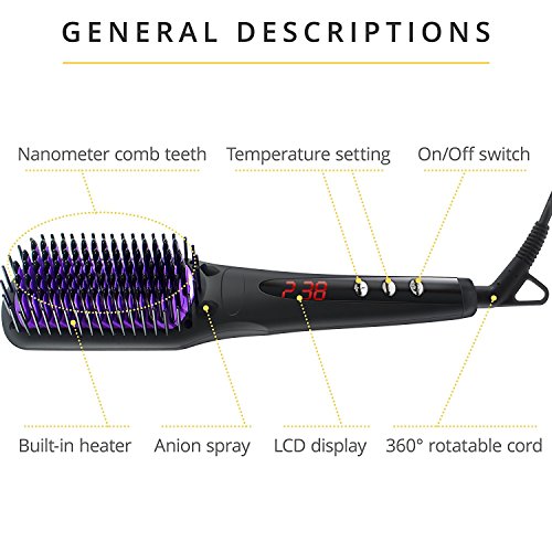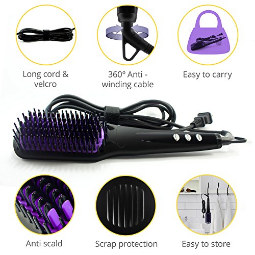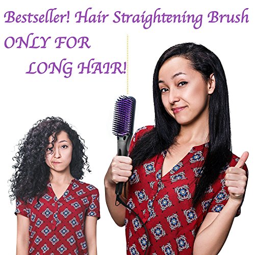 Hair Straightening Brush for Long Hair - Ceramic Straightener with Anti-Scald Hair Comb Teeth - Electric Hot Anti-static Brush - Forget about Frizz and Flyawaysa