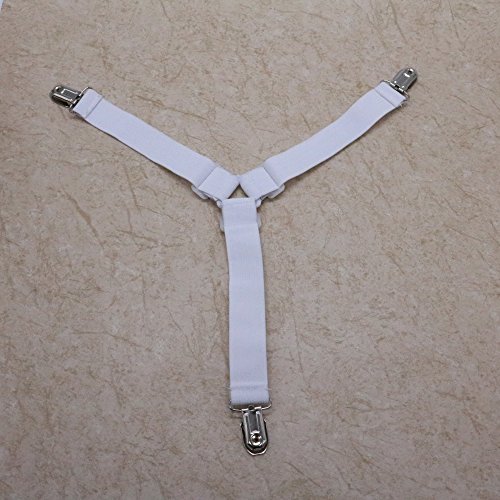 Pack of 4 Triangle Bed Sheet Fastener Adjustable Holder Straps for a Smooth Mattress,White