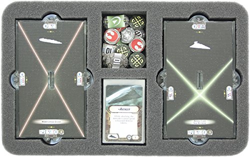 Feldherr Maxi Bag for Star Wars Armada. The Bag comes with foam trays for the entire Wave 3, 4 and 5. In addition, there is enough space for cards in sleeves, Commando and Speed Dials.