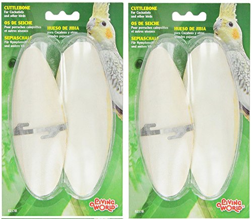 Studio : Living World Publisher : Living World Binding : Kitchen Product Description Living World Cuttlebones are an excellent calcium source for birds. The rough edible surface helps to trim the beaks of birds as well as provide something for your bird to chew on. The cuttlebone is equipped with a holder, allowing you to place it throughout your bird's cage. The Living World Cuttlebones can also be cut into smaller pieces or ground into a powder and used as a nutritional supplement for all types of birds. 0