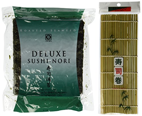 Seaweed Nori for Sushi Making - 50 Full Size Sheets + 1 Sushi Mat