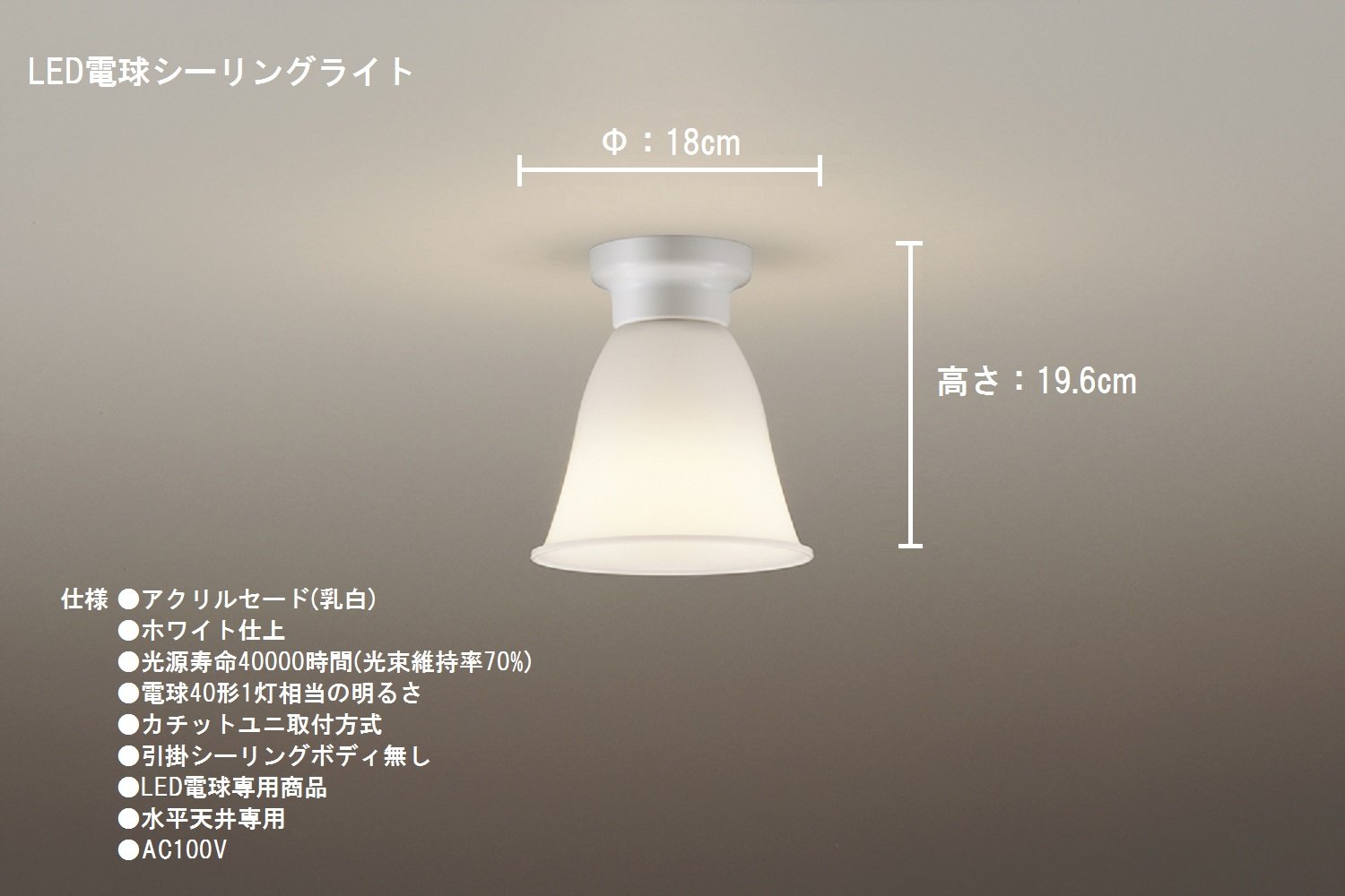 ● Acrylic Seed (Milk White) ● White Finish ● Slide Pack Package: Height 35 x Width 24 x Length 18 cm ● Light Source Life 40000 Hours (Lumen Maintenance Rate 70%) ● Brightness of Light Bulb 40 Shape 1 Light ● Cachit Uni Installation Method