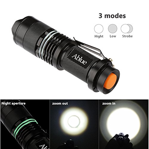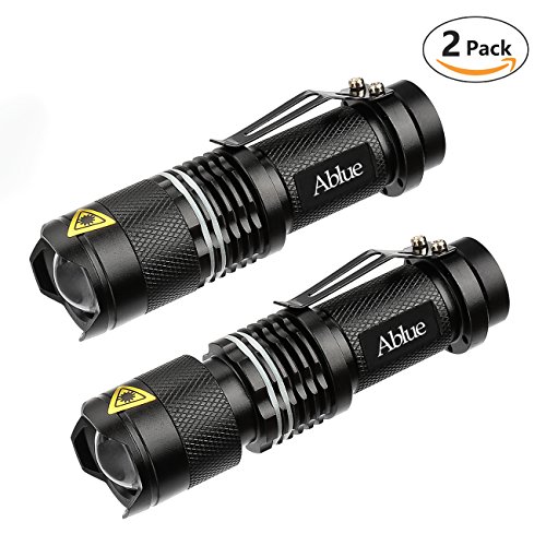 Ablue LED Flashlight, Bright handheld A100 Mini 3 Mode Zoomable Tactical Flashlight with Fluorescent Ring(2 Pack)