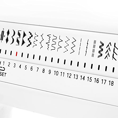 Easy Stitch Selection - Simply Turn the Stitch Selection Dial to the Desired Stitch and the Chosen Stitch Will Appear in Red / Flip-Up Stitch Panel - Take a Look at All 18 Built-In Stitches at a Glance with the Flip-Up Stitch Panel
