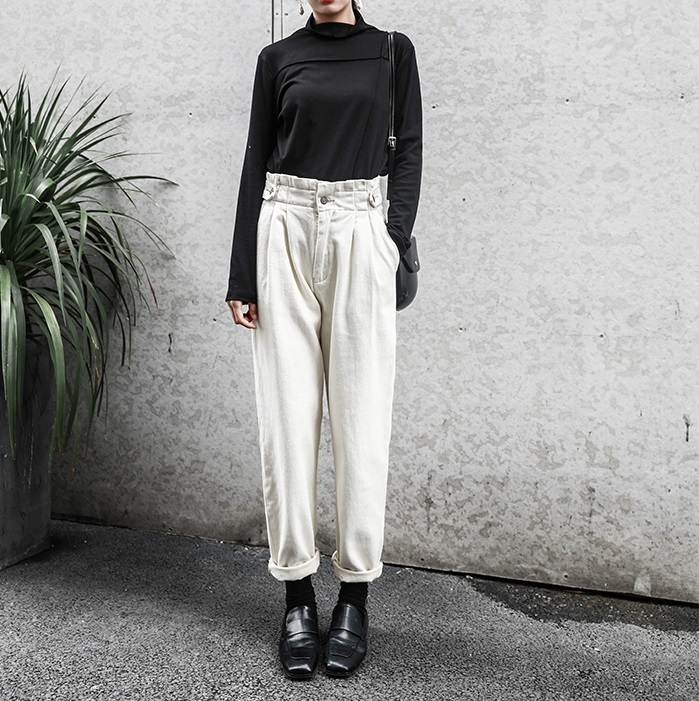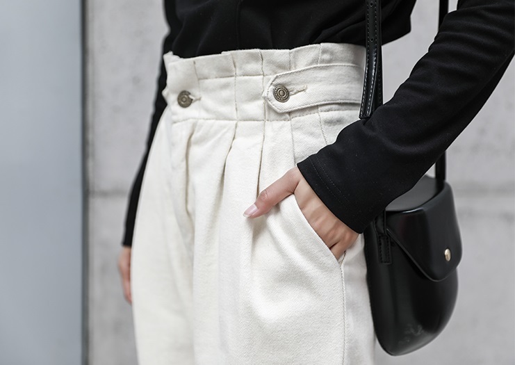 フロントタック入りのハイウエストタイプでトップスinスタイルがサマになるデザイン★