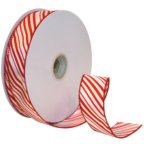 Morex Ribbon Peppermint Stripe Wired Ribbon, 1-1/2-Inch by 50-Yard Spool, Red/White