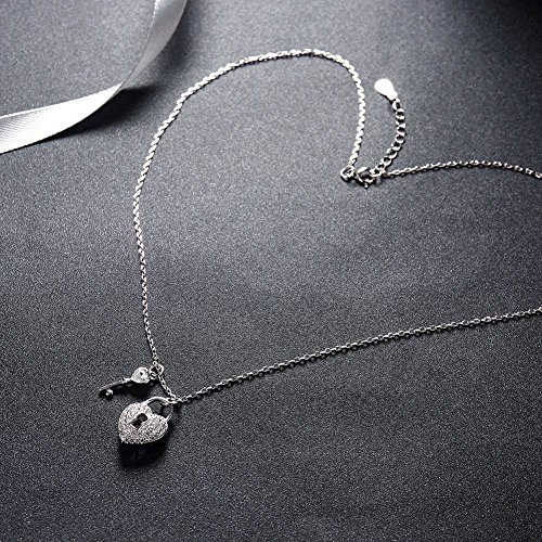-. Title : 925 Sterling Silver Necklace Jewelry for Women Pendant "Lock heart" Diamond Charms for Girls by PRUNUS