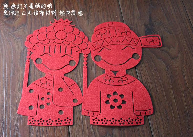 Price is the price of two Name: Non-woven hi word marriage room decoration Weight: 20 grams Dimensions: Diameter 29cm, 35cm high red magpie Style: Chinese style Description: Non-woven material, texture super good, for presses, door stickers, window stickers!