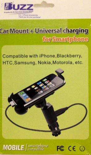 -. Feature : CELL PHONE HOLDER + UNIVERSAL CHARGING: Compatible with iPhone, Samsung, Nokia, HTC, and MORE Smartphones. (you may need to provide your specific cable connector) / WORKS IN ALL CARS- EASY TO USE: This device holder charger combination is such a unique easy to use product. Plug into your automobile's power plug and adjust the holder to fit your device. Easy snap in and out. Adjustable rotation for 360 degrees. Adjustable height from 108mm-135mm. Adjustable width from 45mm-75mm. PLEASE CHECK THE SIZE OF YOUR PHONE. THIS MAY NOT WORK ON THE LARGER FABLET TYPE DEVICES. / A MICRO SPIN USB cable included: (5V, 1.5A) Quick Speed & High Efficiency Charging / HIGH QUALITY PC+ABS material, Non-Slip feet, Keep your cellphone in holder steady. / THE BUZZ POWER GUARANTEE: Full one year guarantee for replacement from seller. (Just an email away) We stand behind our products and up for our customers!