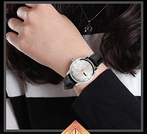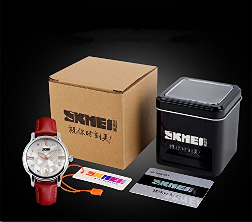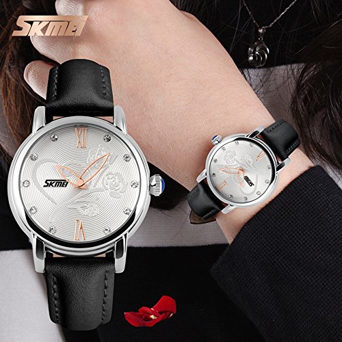 J.Market Women's Quartz Watch 30 Meters Waterproof Wrist Watch Flower Dial with Genuine Leather Band