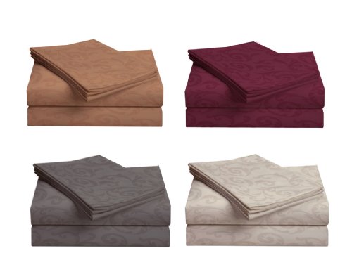 Florentine 1-Pack Embossed Scroll Microfiber Bedding Sheet Set, King (Colors may vary)