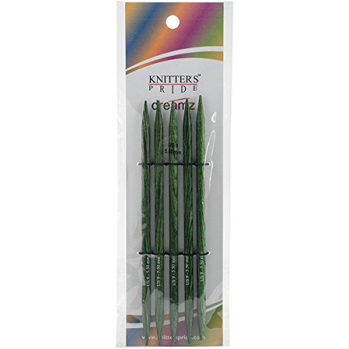 Set of 5 Symfonie Dreamz Double Pointed Needles; Length 6" (15 cm), Size US 8 (5.0mm). Range of radiant colors allows mix-n-match & organizational options. Perfect points, flawlessly tapered - ideal for all yarns and every project. Lightweight, strong & flexible. Polished wood surface works effortlessly with every type of yarn. Warm to the touch, and gentle in the hand. The knitter's favorite needle: Providing hours of pleasurable knitting with no hand fatigue.Feature