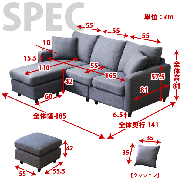 (約)幅185x奥行き81~141x高さ81cm (脚部分)約8cm