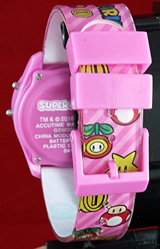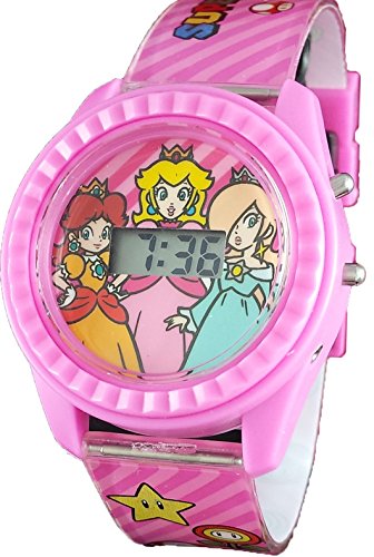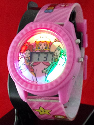 Super Mario Brothers Princess Peach Rotating Flashing Lights Pink LCD Watch - LCD Rotating Flashing Light Watch for Girls Ages 3+ years Featuring Princess Peach from Super Mario Brothers with Adjustable Band.Feature