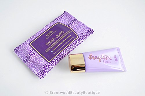 -. Feature : Tarte Fresh Eyes Maracuja Wipes - 10 Wipes / Tarte Brighter Days Highlighting Moisturizer - 0.5 oz / 15 ml Travel Size / Tarte Lifted Mascara - 0.24 oz / 7 ml Full Size / Tarte Quench Lip Rescue (Nude) - 0.035 oz / 1 g Travel Size