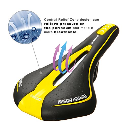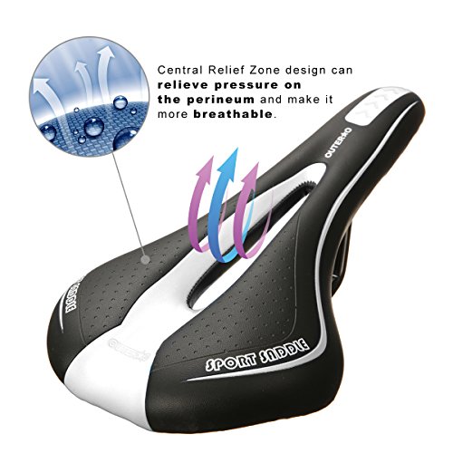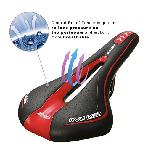 OUTERDO Bike Saddle Mountain Bike Seat Breathable Comfortable Bicycle Seat with Central Relief Zone and Ergonomics Design Fit for Road Bike and Mountain Bike