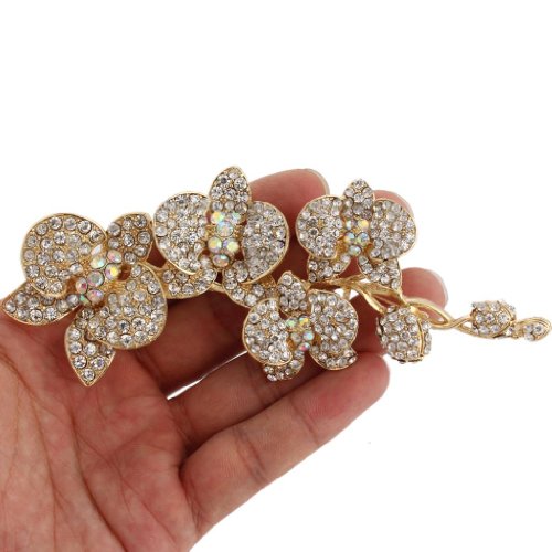 -. Binding : Jewelry -. Brand : EVER FAITH -. Color : Gold -. Department : womens -. Feature : [!]EVER FAITH is a US registered trademark and Ever Faith Jewelry(former name: Kiss Bling) is its only owner. We will pursue legal action against trademark infringement in case of UNAUTHORIZED sale or resale. / 5.11 Inch by 1.58 Inch / Wrapping: Come with some spare crystals, and a gift box or favor bag (depend on product size) -. Label : Ever Faith -. Manufacturer : Ever Faith -. Model : A03011-1 -. MPN : A03011-1 -. PartNumber : A03011-1 -. ProductGroup : Jewelry -. ProductTypeName : FASHIONOTHER -. Publisher : Ever Faith -. Studio : Ever Faith -. Title : EVER FAITH® 5 Inch Flower Orchid Clear Austrian Crystal Brooch Pendant Gold-Tone