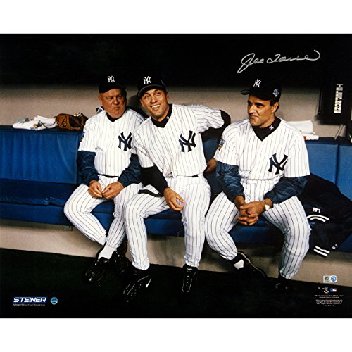 Joe Torre Has Personally Hand-signed This Derek Jeter Don Zimmer Joe Torre Sitting In Dugout 16 inch x 20 inch Photo.