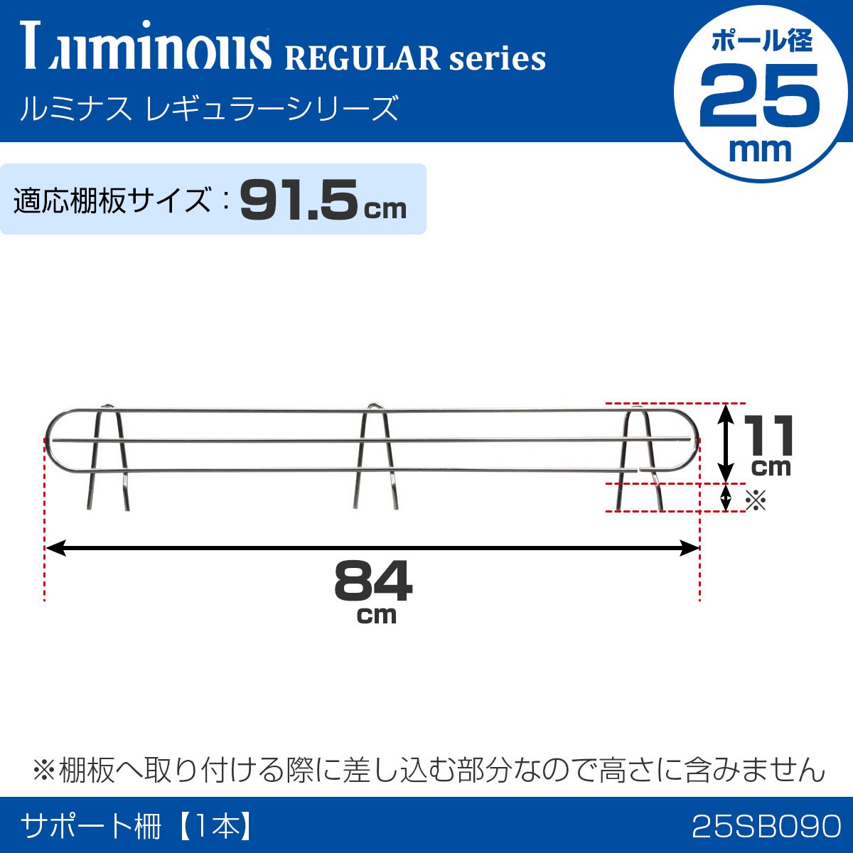 Luminous pole diameter 25mm for parts functionality Up Parts support fence (spill prevention) width and depth 91.5cm shelf for width 84 × height 11cm 25SB090