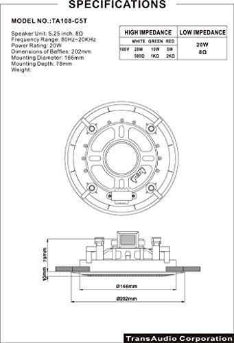 trance 오디오 5인치 하이 임피던스 매입 스피커 TA108-C5T 1개