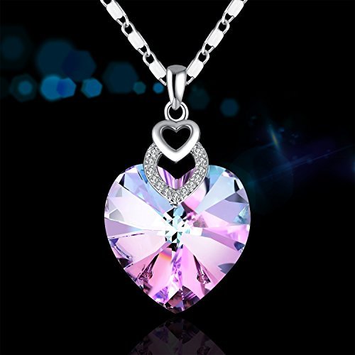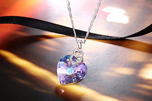 -. Title : Heart Necklace PLATO H "Brave Heart" Woman Fashion Pendant Necklace Love Heart Necklace For Girls/Woman Purple Necklace Pendant with Swarovski Crystal Fashion Jewelry Purple/Ocean Blue