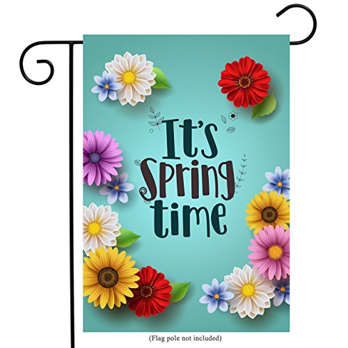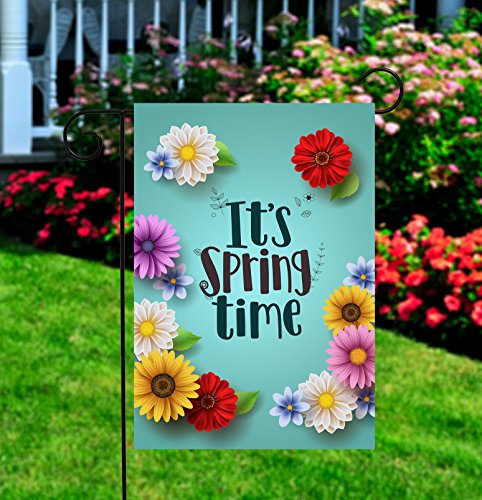 It's Spring Time Garden Flag Floral Double-sided Yard Flag, Vivid Flowers, Polyester, Great Design Yard Flag to Brighten Up Your Home 12" x 18" + BONUS Rubber Stopper and Anti-wind Clip