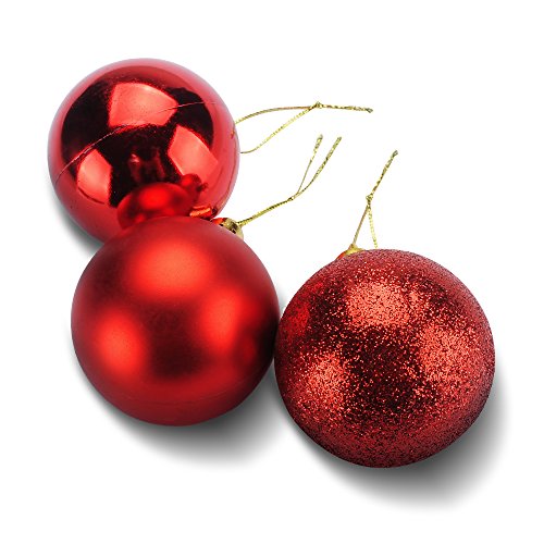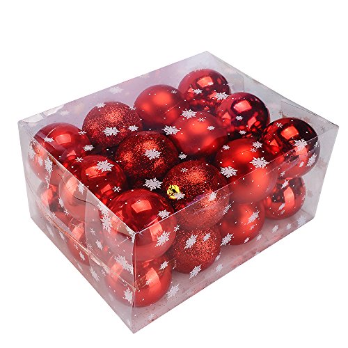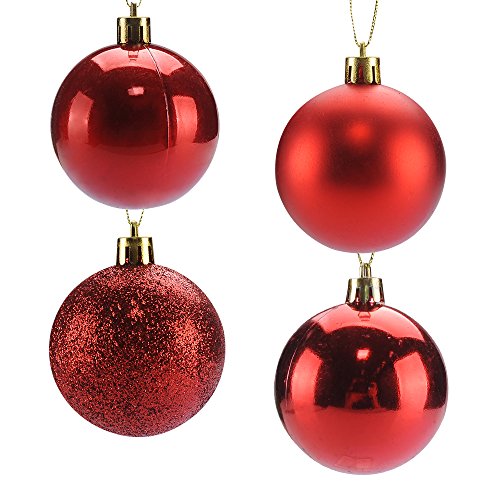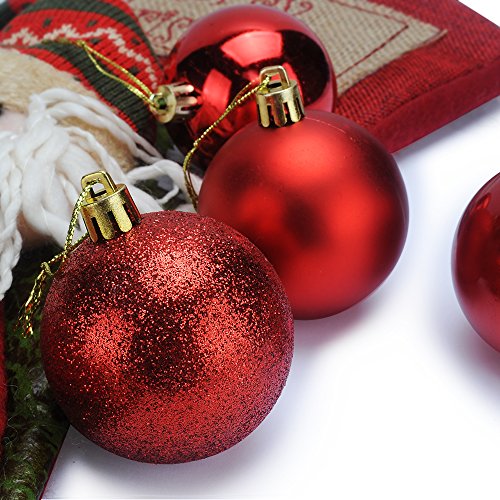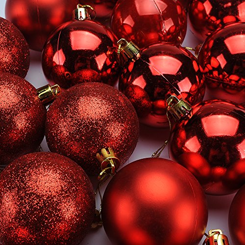 TIOVERY Christmas Ball Ornaments, Decorations Shatterproof Shiny Polshed Hanging Christmas Ornaments Baubles for Christmas Tree Pack of 24 (Red 2.36'')