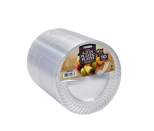 Studio : Member's Mark Publisher : Member's Mark Binding : Health and Beauty Product Description Quality disposable clear plates that are great for weddings, catering, showers, foodservice, office parties or everyday use. Package has 110, 6 1/4in Clear Plates. 0