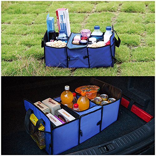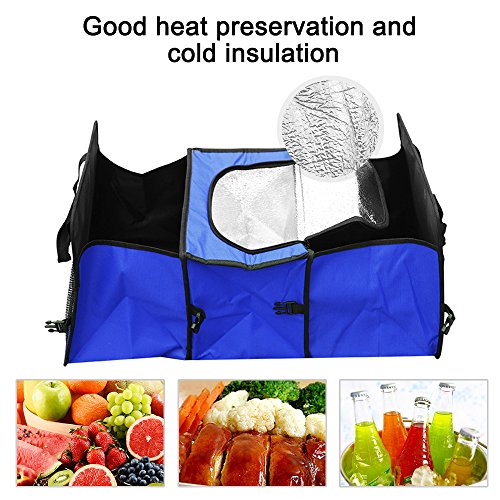 XXQQ Oxford Fabric Vehicle-mounted Containing Box, 3-Compartment Collapsible Car Trunk Organizer, Auto Storage Packing Carton With a Cooler Bag, Blue Color