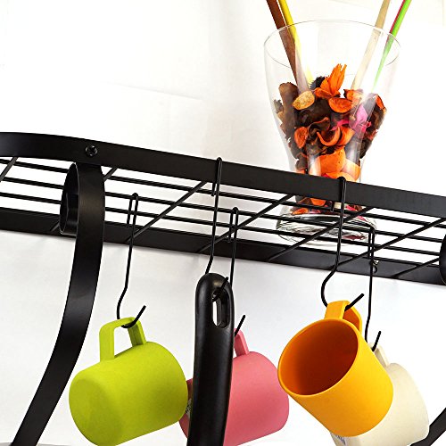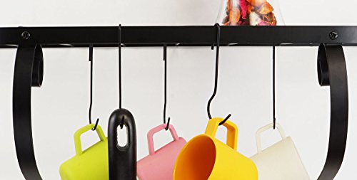 - VERSATILE: A small bend on one end fits nicely on the racks. The other large hook end is perfect to hold bigger pots and pan handle, pan lids or coffee mugs from utility rack or whatever else. Use them in the kitchen for hanging pots, utensils, or even coffee mugs; in the bathroom for hanging towels; in the garage for organizing your tools; or take them outside for hanging plants or for keeping up with your grill utensils.