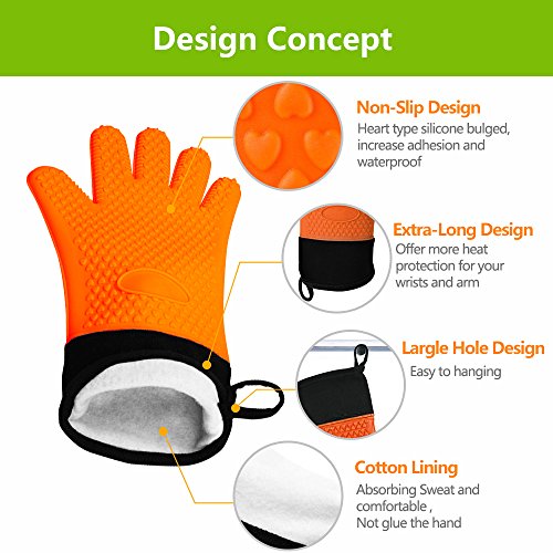 Silicone Gloves Meifox Heat Resistant Gloves Silicone Grilling Kitchen Oven gloves Extra long cuff gloves Waterproof Non-slip Potholder for BBQ,Barbecue, Cooking, Baking