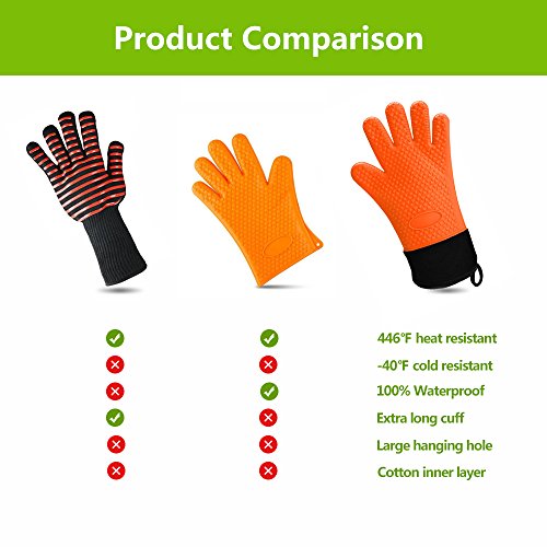 - 【Worry free guarantee】Provides 100% no questions asked money back guarantee.24 Hours email customer service response. If you’re not completely satisfied with your silicone grill gloves purchase simply let us know, and you'll be offered a FULL refund or replacement!