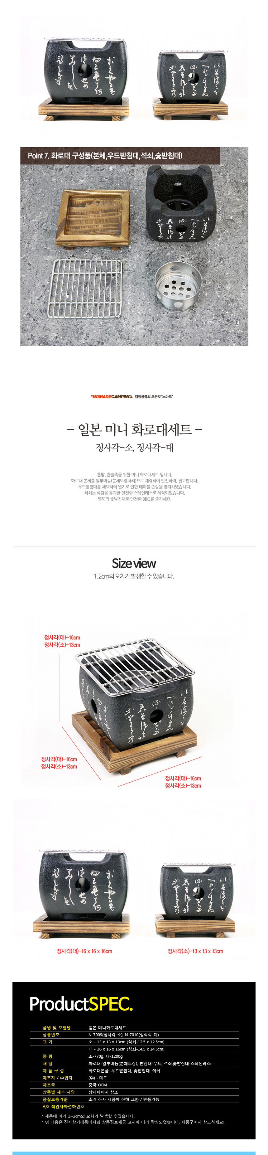 • 품명 일본 미니화로대세트 정사각 대 N-7010