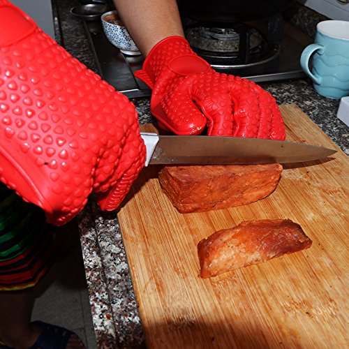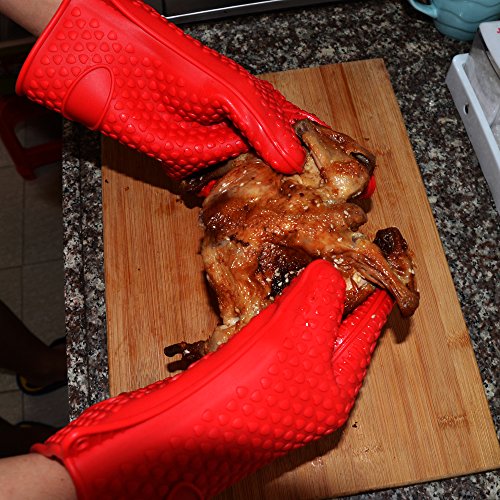 - Feature : MORE FOR LESS!**** ATTENTION:THIS IS HIGH QUALITY 190G SILICONE KITCHEN AND BBQ GLOVES,NOT 145G CHEAP ONE***Don't get burned by cheaper flimsy cooking gloves. Only defenderX grilling gloves have been specially designed to contain 25% more silicone than standard heat resistant gloves allowing for maximum protection up to 425F. / MULTI-PURPOSE: These are so much more than just grilling gloves. defenderX BBQ Gloves can also be used as oven mitts, baking gloves, pot holders, hot pads, grip gloves and camp fire gloves. Great for changing hot light bulbs, opening stubborn jars and even takes the place of spatulas, tongs, and other kitchen utensils! / CLEAN AND SAFE: Unlike typical cloth oven mitts; DefenderX heat resistant gloves are waterproof, dishwasher safe, impervious to mold and mildew and will never harbor foul odors. Easy Cleaning Inside and Out simply place the gloves in the dishwasher or wash with your dishes- dries inside and out - no inner mold and smell like other your other cloth gloves and mitts. / HEAT RESISTAN PROTECTS UP TO 425 DEGREES -This defenderX Gloves Net Weight 190g, it Allowing You to Grab Your Roasting Pans - Cast Iron Griddle - Crock Pot - Pizza Stone - Grill Sheets - Clay Pot - Oven Racks - Smoker Racks and Doors - Outdoor Fire Pit Cover - Transfer All of these Safely Securely and with Confidence. / FDA APPROVED AND BPA FREE:Made from 100% food grade recyclable silicone Silicone Compound is 100% Water Proof - Hot Liquids Can't Reach Your Skin - Place and Remove Food in boiling water - handle juicy meats - pull pork and chicken with ease and comfort - remove whole turkeys, hams, roasts and chickens from the roasting pan and smoker -no more dropping Heavy Meats from tongs or two forks!
