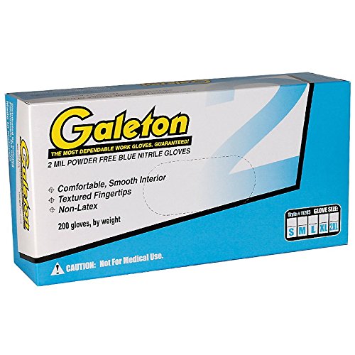 Galeton 11205-M 11205 2 mil Nitrile Disposable Gloves, Powder Free, Box of 200, Medium ,Blue