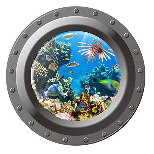 Dnven (17"w X 17"h) Peel and Stick Window View Under Sea Tropical Fishes 3d Window View Wall Arts Decals Decors Removable Stickers Undersea World