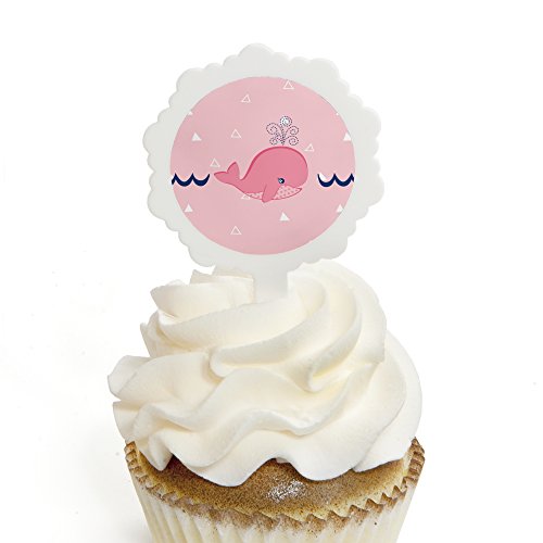 Tale Of A Girl Whale - Cupcake Picks with Stickers - Baby Shower or Birthday Party Cupcake Toppers - 12 Count