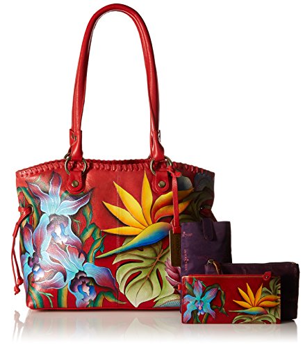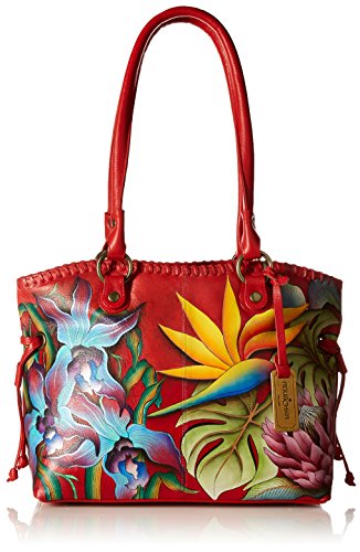 Anuschka Handpainted Leather Large Drawstring Shopper,Island Escape