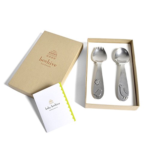 Beehive Handmade Baby and Mother Bird Pewter Baby Spoon Set