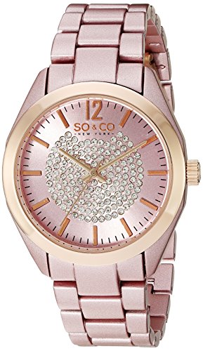SO & CO New York Frauen SoHo Analoganzeige japanisches Quarzuhr rosafarbenen Zifferblatt, Rosa Gurt - 5096A.4