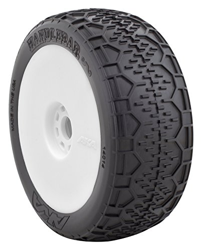 Studio : AKA Racing Publisher : AKA Racing Binding : Toy Product Description This is the AKA Racing pair of 1/8 scale Pre-Mounted Handlebar Super Soft Compound Buggy Tires with Red Inserts and White EVO Wheels included, (2).